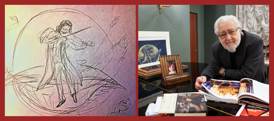 The work is dedicated to Michael and Inna’s close friend and long-time colleague, outstanding theatrical director Lev Dodin.  Since the moment when Michael presented his specially created for the giant of the world theatrical stage artwork, Lev Dodin has placed it just next to him in his study where he spends the most of his time. To the best of our knowledge, the work is still there.