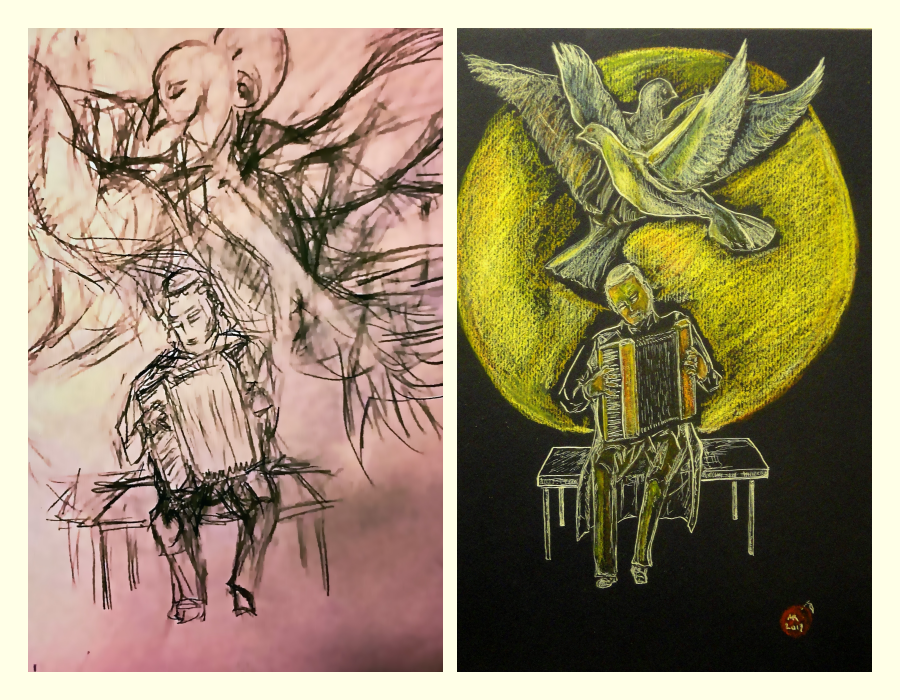 And at the exhibition, people would be able to see Michael’s study for this particular version of his Jewish Melody. It is Flight – as Dodin’s world of mighty emotions, deep humanity, and never-failed devotion to his people.