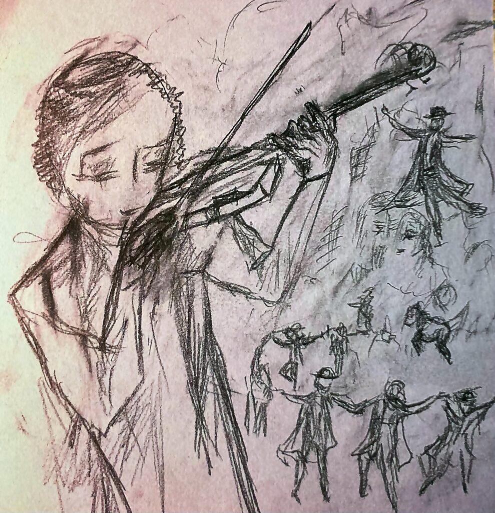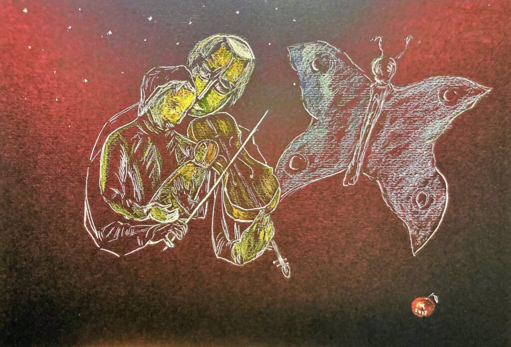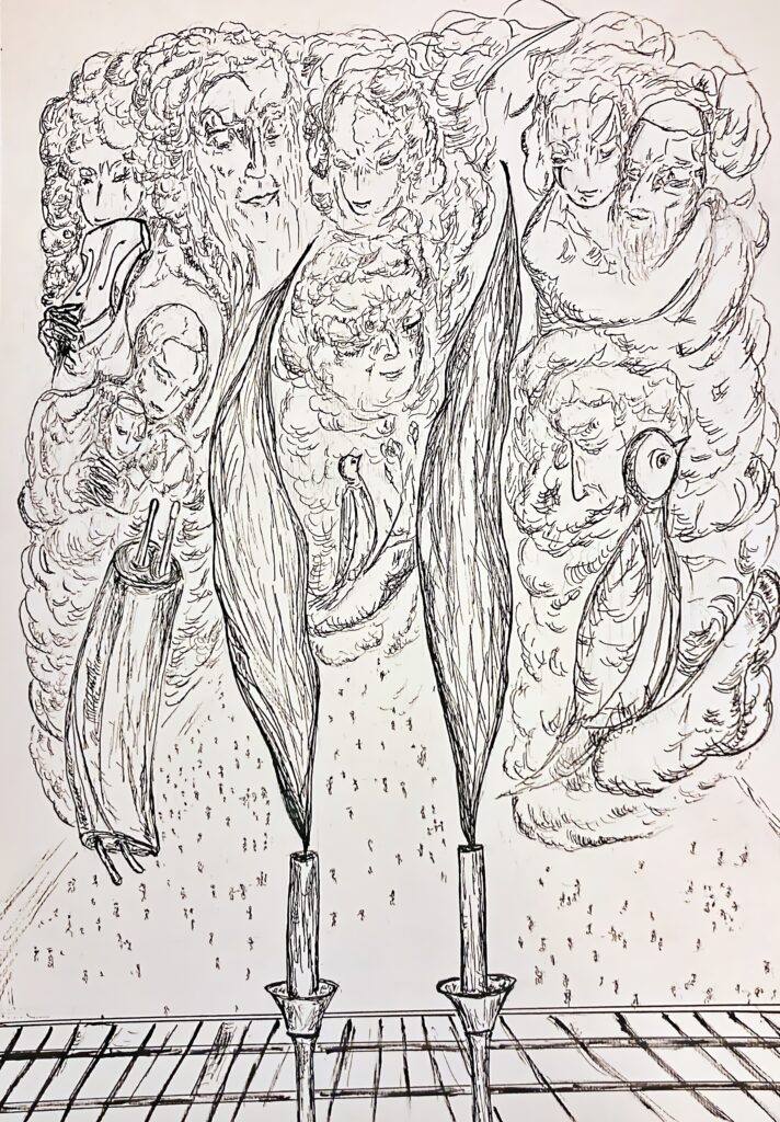 Artworks: Michael Rogatchi’s original drawings, works on paper and exclusive authored prints reflecting on the Yiddish world are part of the artist’s oeuvre on various aspects of Jewish heritage. They contain lyrical works, homages, visualisation of psalms, personal take on Jewish music, and specific focus on shtetl culture and tradition. All those works bear the artist’s distinctive style which is fine and detailed, conveying his knowledge and homage to the rich humane tradition in a loving and masterly way.