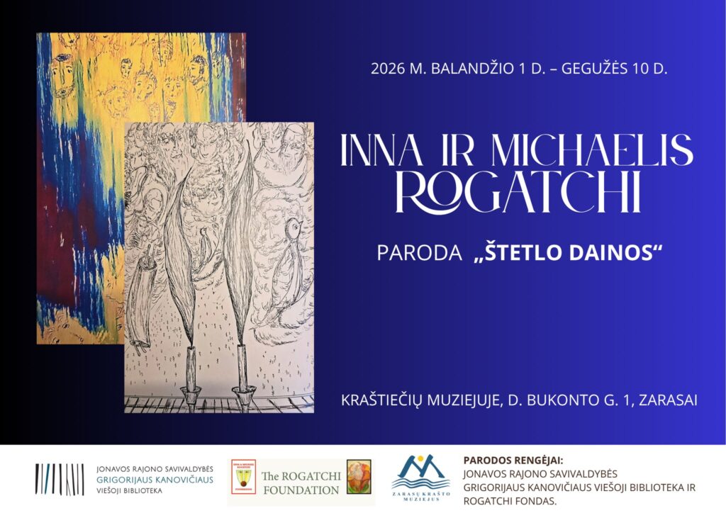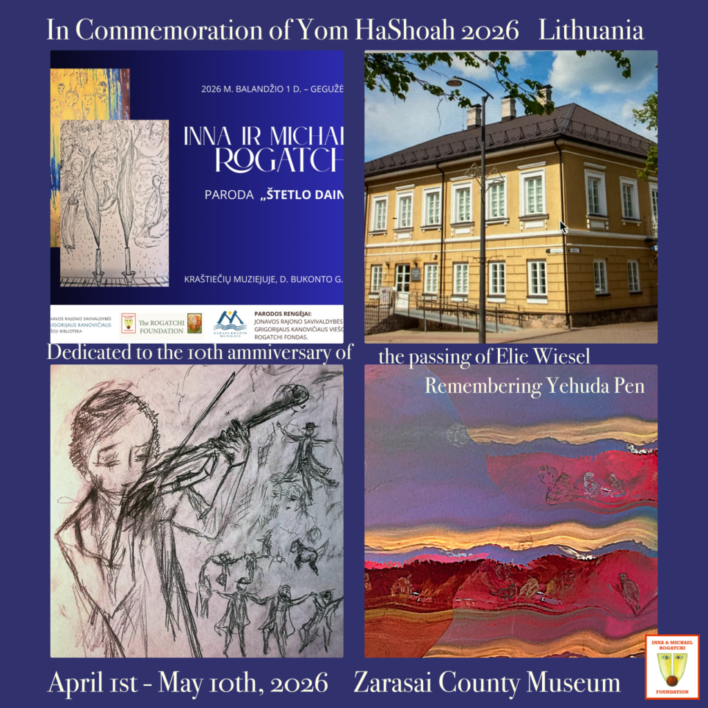 Michael Rogatchi continues his participation in the Commemorative European Art Events 2026 series in cooperation with Lithuanian colleagues with a special exhibition at the inviting place. The Shtetl Songs exhibition commemorates Jewish life and legacy at the time of the Holocaust Remembrance Day Yom Hashoa ( April 13-14th, 20206), and remembering the 10th anniversary of Elie Wiesel’s passing ( which occurred on July 2nd, 2016).