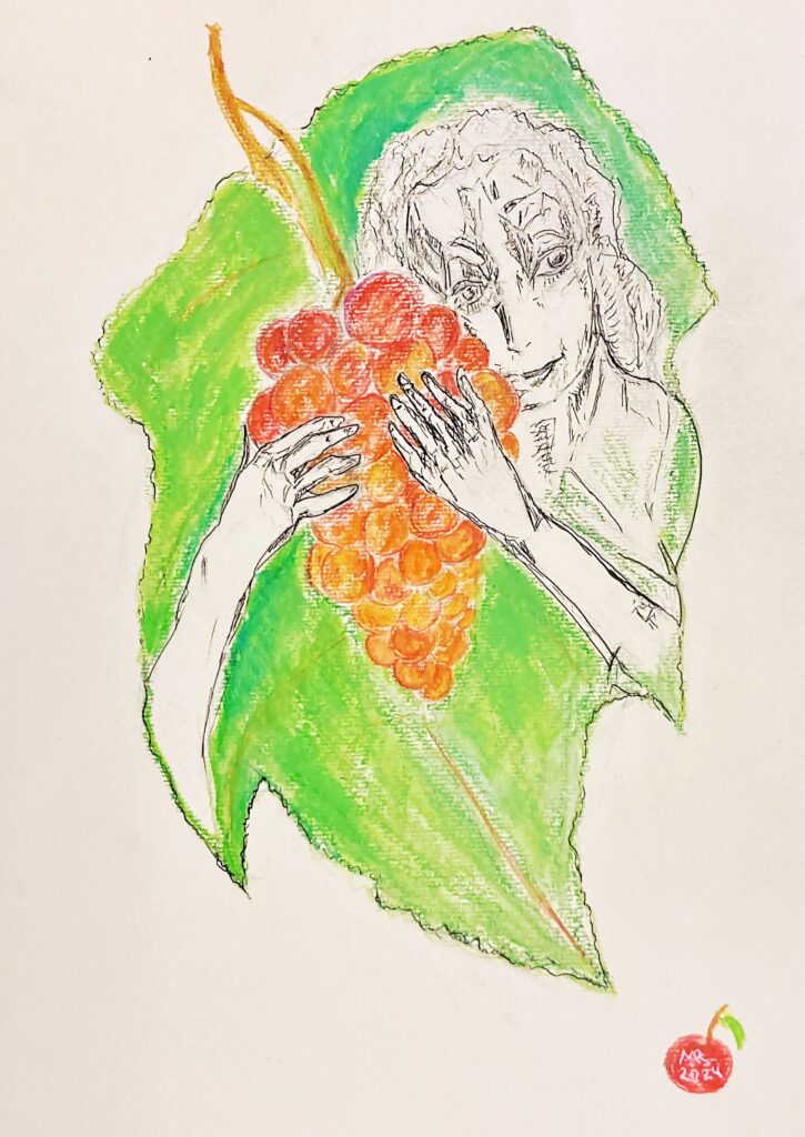 Psalm 1:3-4. Indian ink, oil pastel on Italian hand-made white cotton paper. 35 x 50 cm. 2023. Private collection, Vienna, Austria.